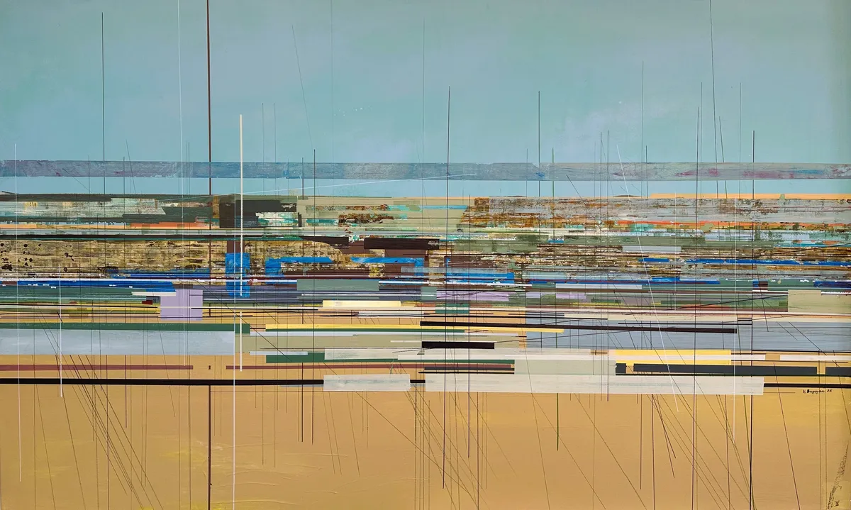 Digital City Matrix presents the city as a layered system of data, structure, and atmosphere. Horizontal bands and intersecting lines form a spatial grid where urban space is no longer fixed, but continuously recalculated. Architecture here appears as a digital condition — fragmented, stratified, and suspended between material reality and abstract mapping. The city unfolds as a matrix of layers, where physical space merges with informational logic.